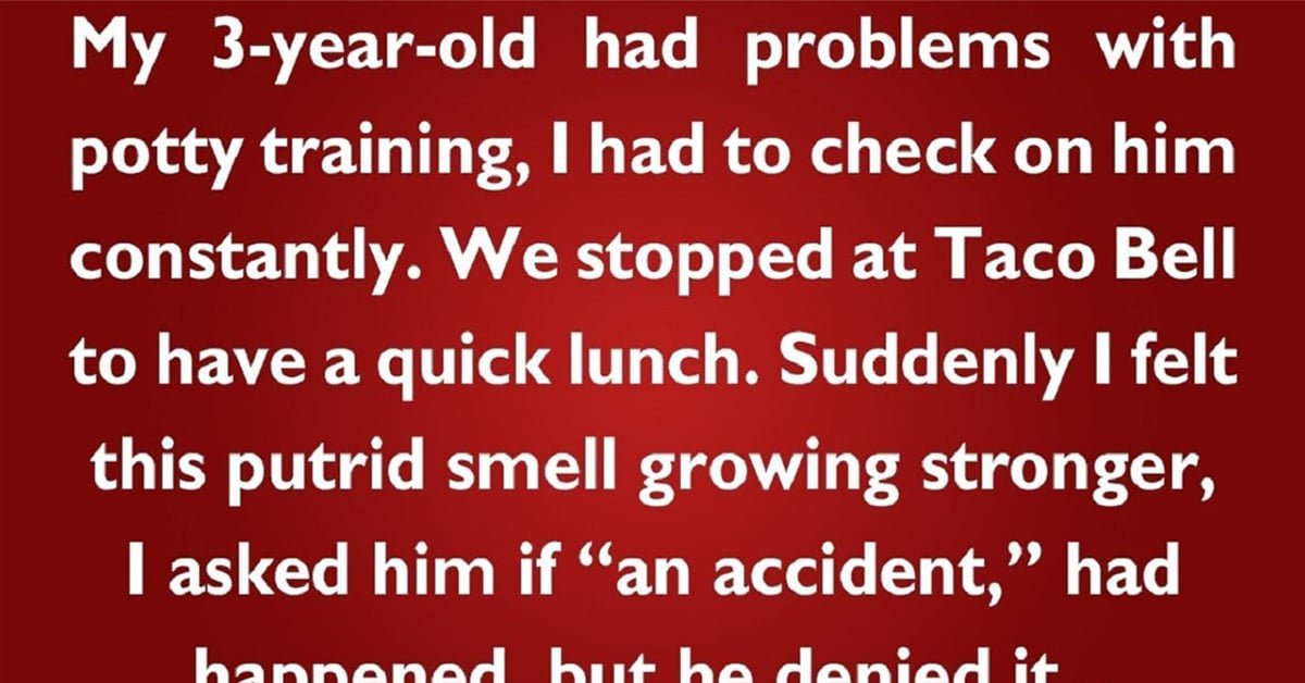 My 3-year-old son had a lot of problems with potty training, and I was on him constantly. One day we stopped at Taco Bell for a quick lunch in between errands. It was very busy, with a full dining room.
