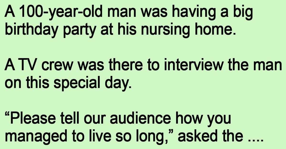 “Please tell our audience how you managed to live so long,” asked the reporter.