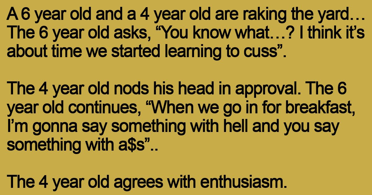 The 6 year old continues, “When we go in for breakfast, I’m gonna say something with hell and you say something with a$s”..