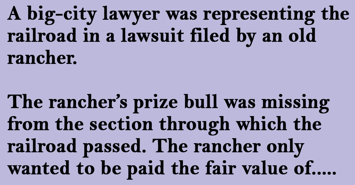 A big-city lawyer was representing the railroad in a lawsuit filed by an old rancher.