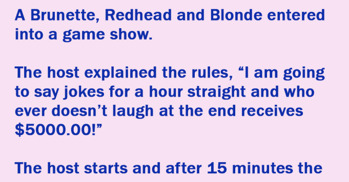 A Brunette, Redhead and Blonde entered into a game show.