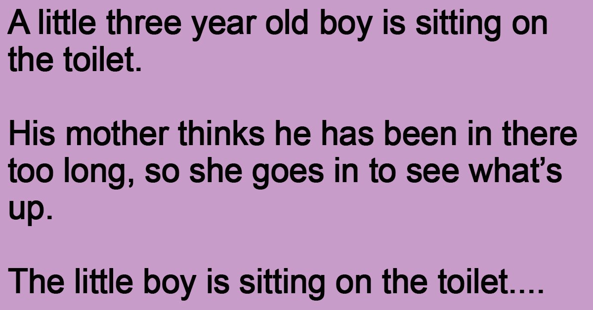His mother thinks he has been in there too long, so she goes in to see what’s up.