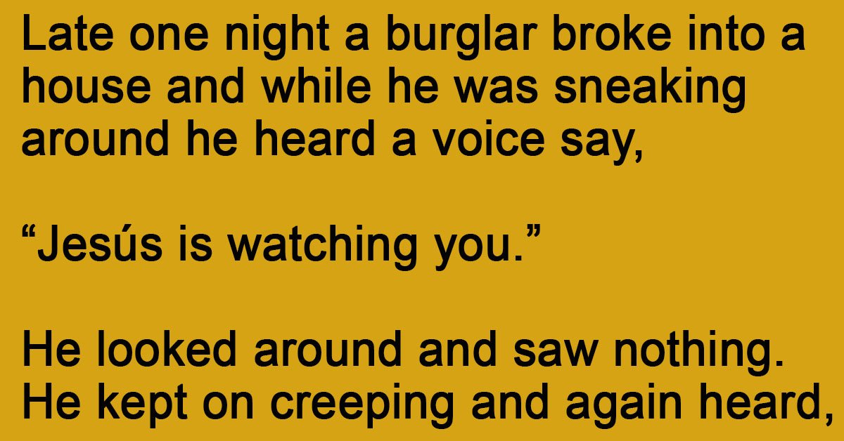 Late one night a burglar broke into a house and while he was sneaking around he heard a voice say,