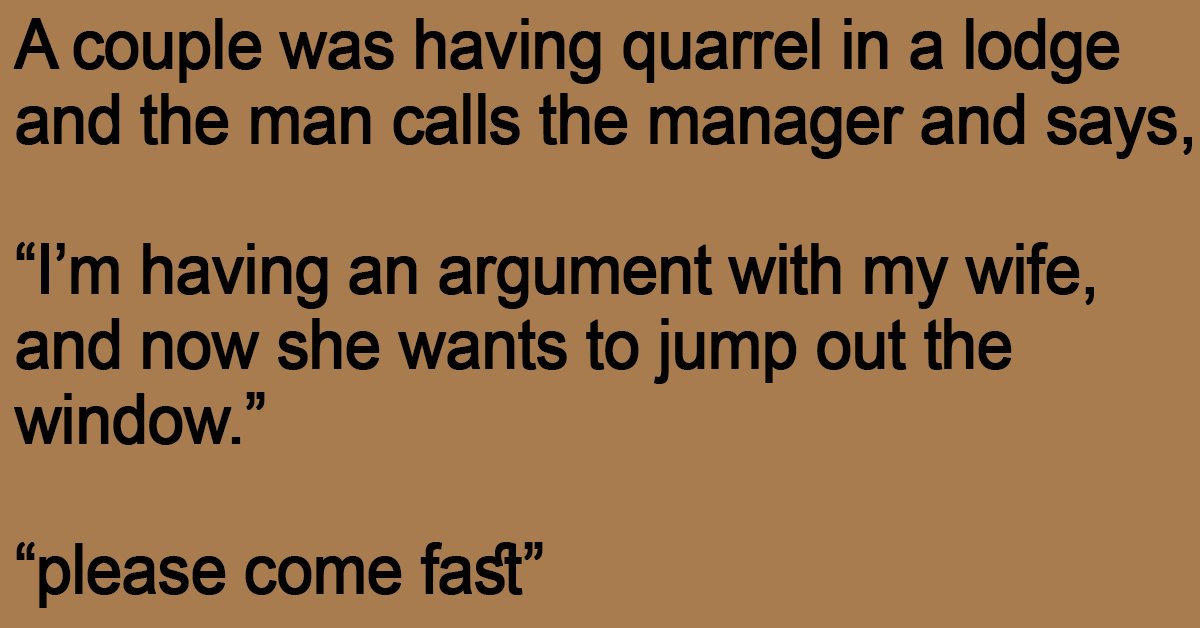 “I’m having an argument with my wife, and now she wants to jump out the window.”