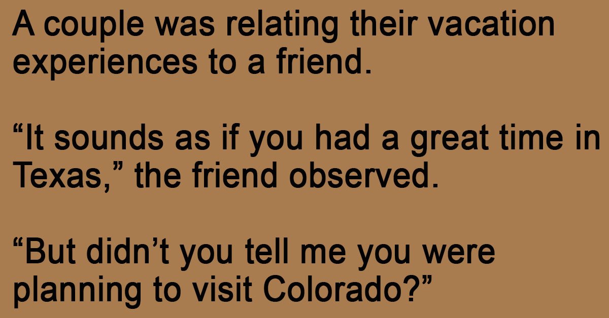 “It sounds as if you had a great time in Texas,” the friend observed.