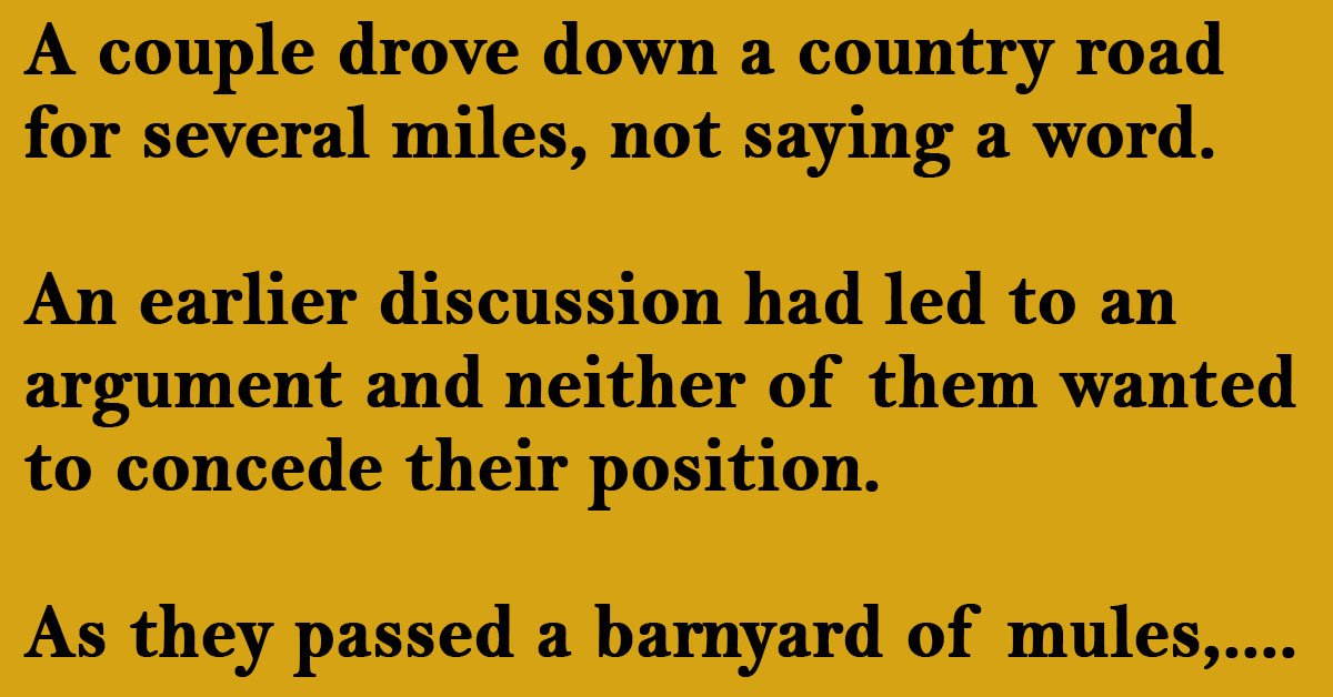 As they passed a barnyard of mules, goats, and pigs, the husband asked sarcastically,