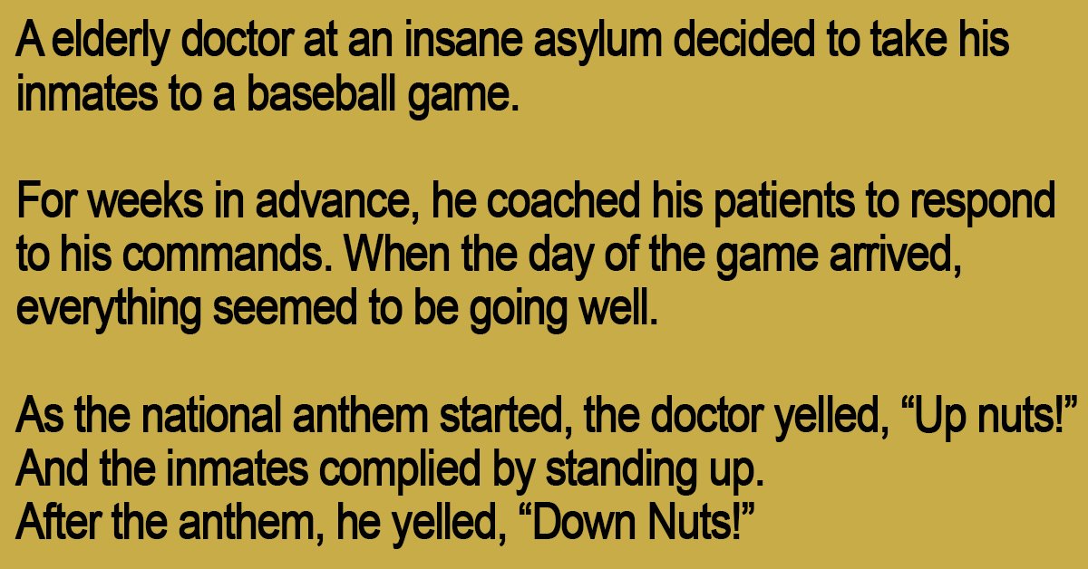 As the national anthem started, the doctor yelled, “Up nuts!”