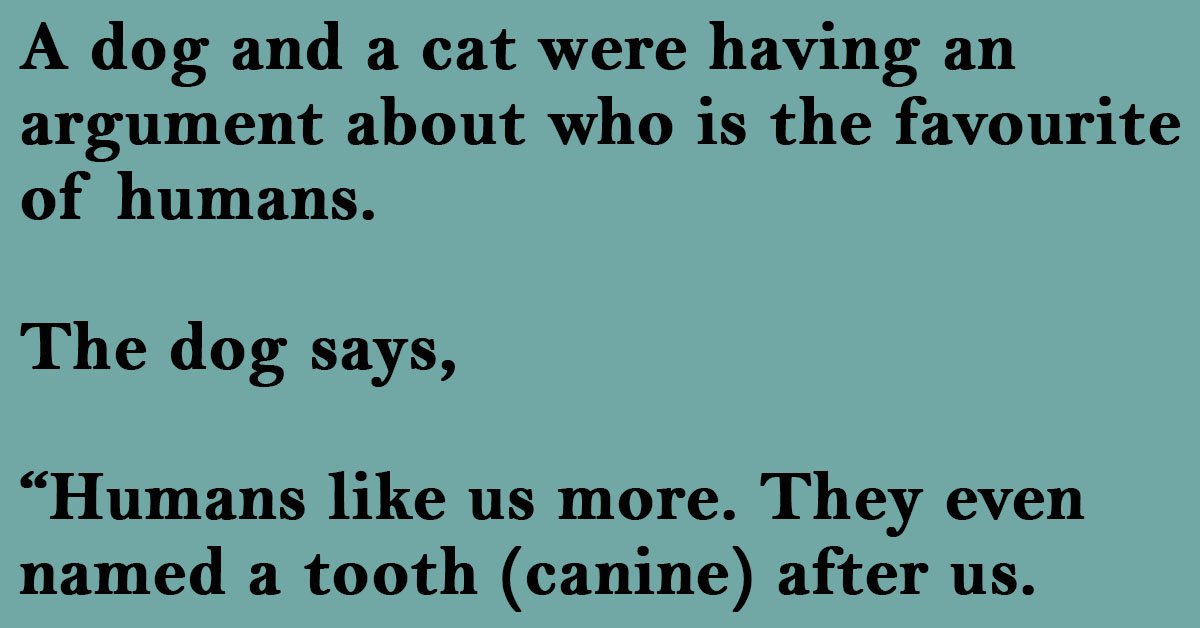“Humans like us more. They even named a tooth (canine) after us. Naming such an important body part after us shows that they like us more.”