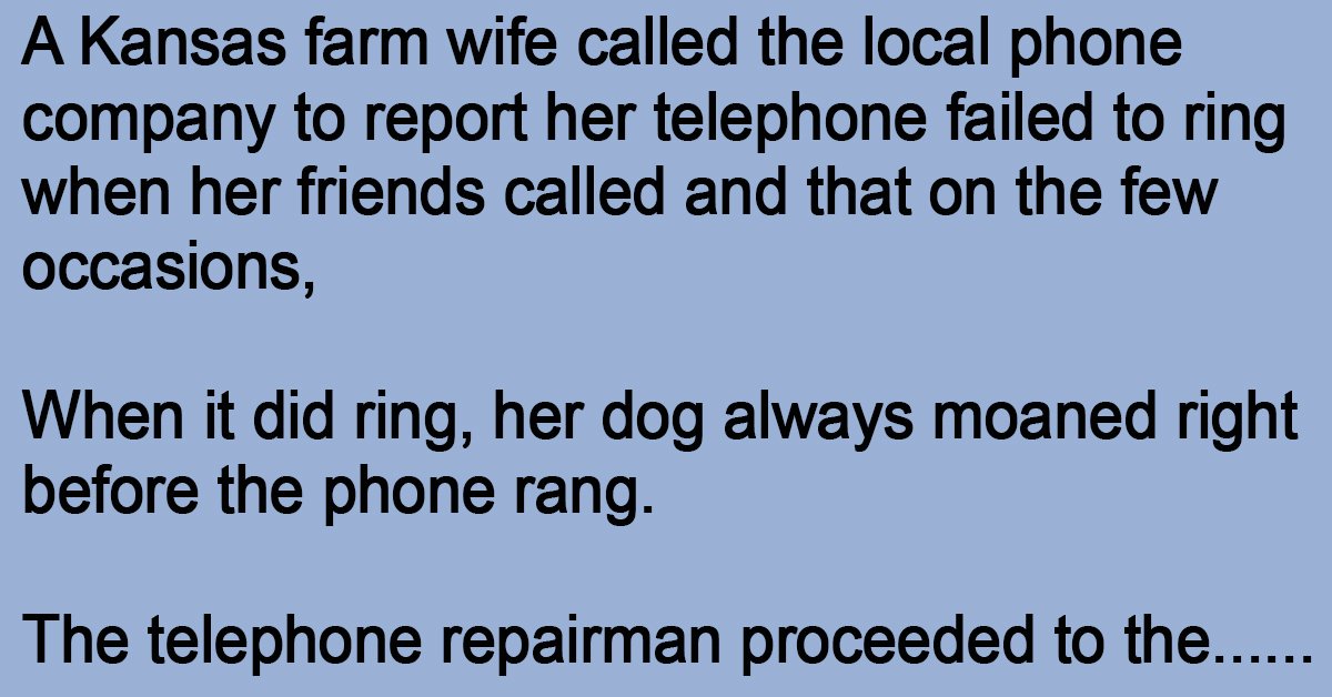A Kansas farm wife called the local phone company to report her telephone failed to ring when her friends called and that on the few occasions,