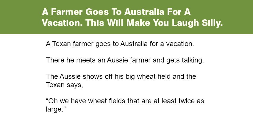 The Aussie shows off his big wheat field and the Texan says,