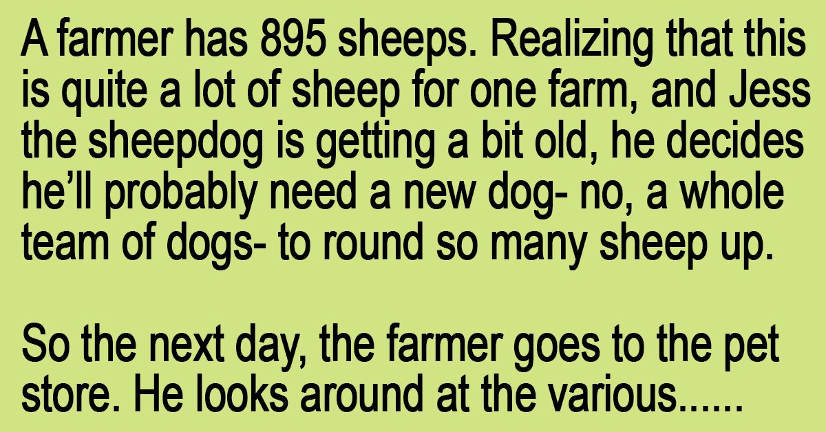 “I’ve got just the thing for you.” and leads the farmer into a small back room, where a single sheepdog sits waiting.