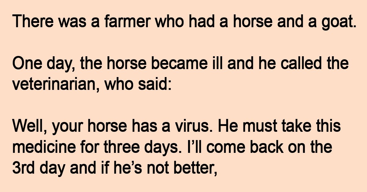 Well, your horse has a virus. He must take this medicine for three days. I’ll come back on the 3rd day and if he’s not better, we’re going to have to put him down.