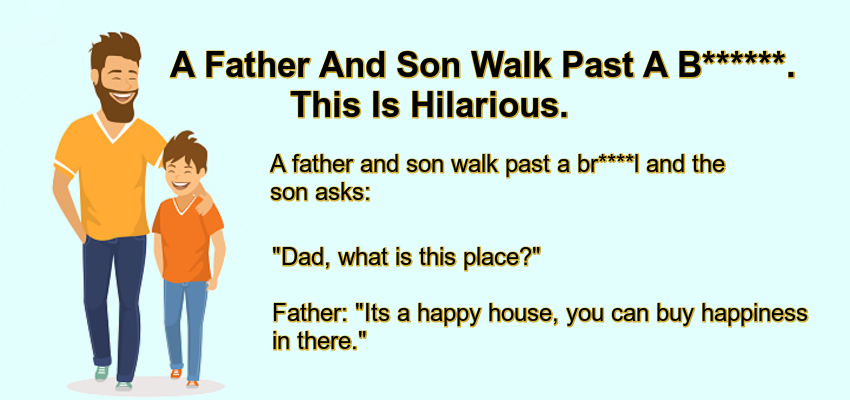 A father and son walk past a br****l and the son asks: