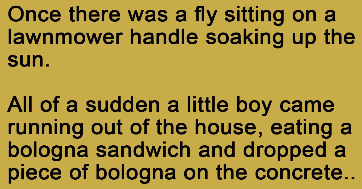 Once there was a fly sitting on a lawnmower handle soaking up the sun.