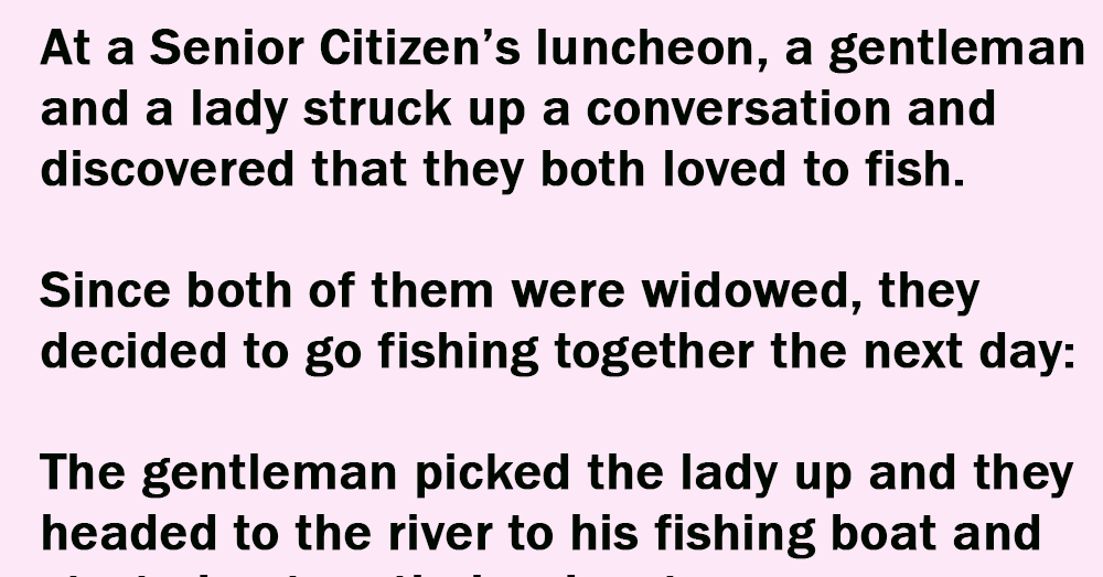 At a Senior Citizen’s luncheon, a gentleman and a lady struck up a conversation and discovered that they both loved to fish.