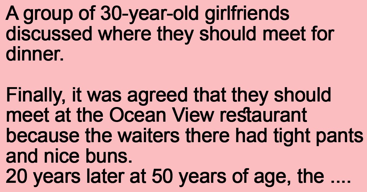 Finally, it was agreed that they should meet at the Ocean View restaurant because the waiters there had tight pants and nice buns.