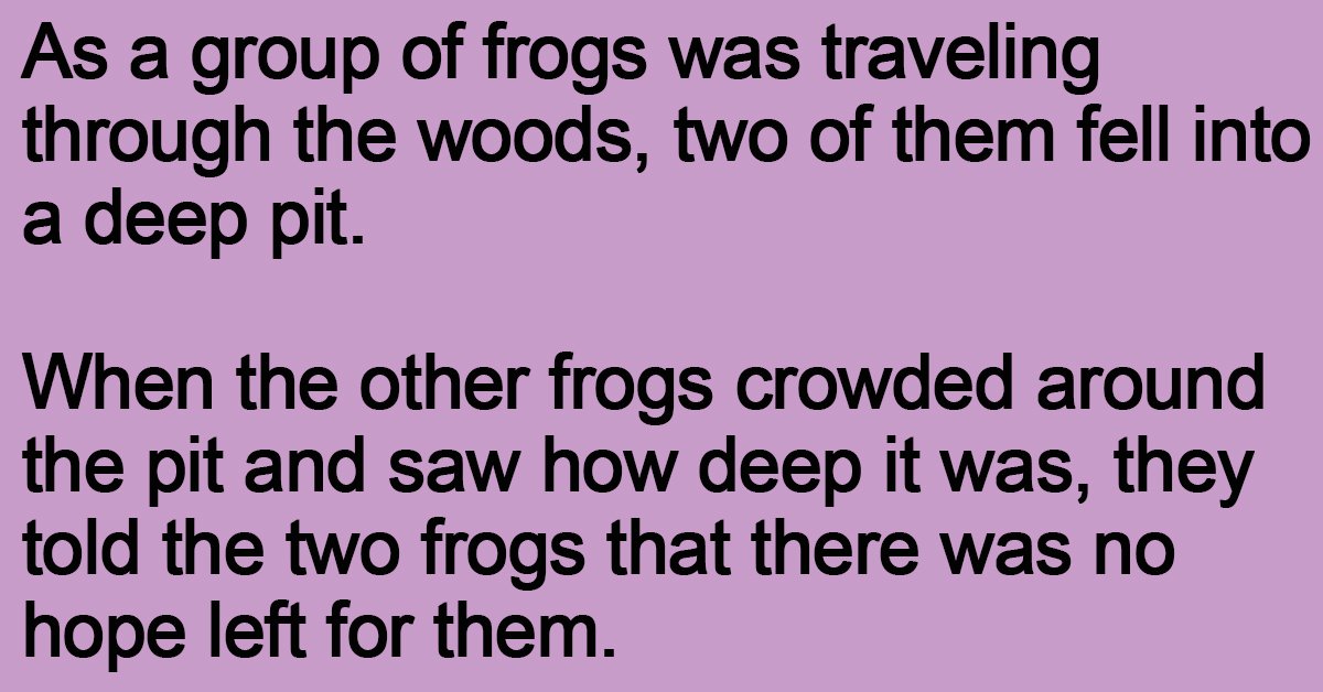 When the other frogs crowded around the pit and saw how deep it was, they told the two frogs that there was no hope left for them.