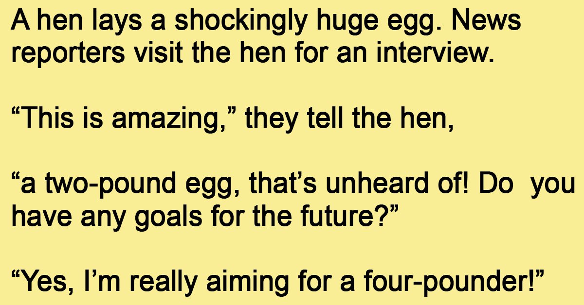 “Yes, I’m really aiming for a four-pounder!” says the hen proudly.