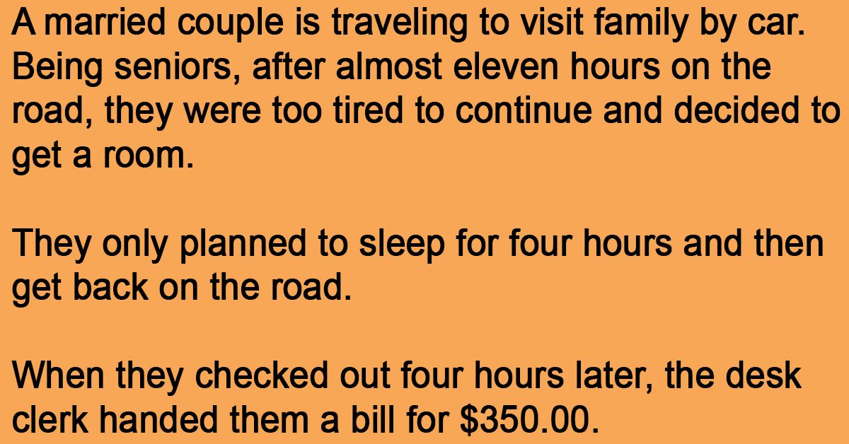 When they checked out four hours later, the desk clerk handed them a bill for $350.00.