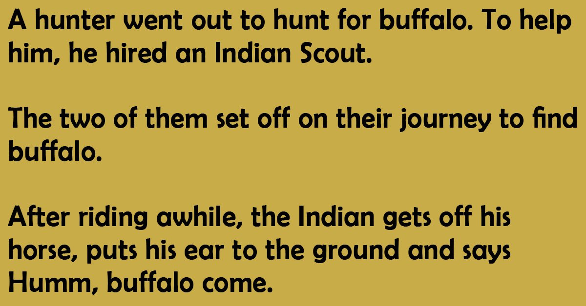 After riding awhile, the Indian gets off his horse, puts his ear to the ground and says