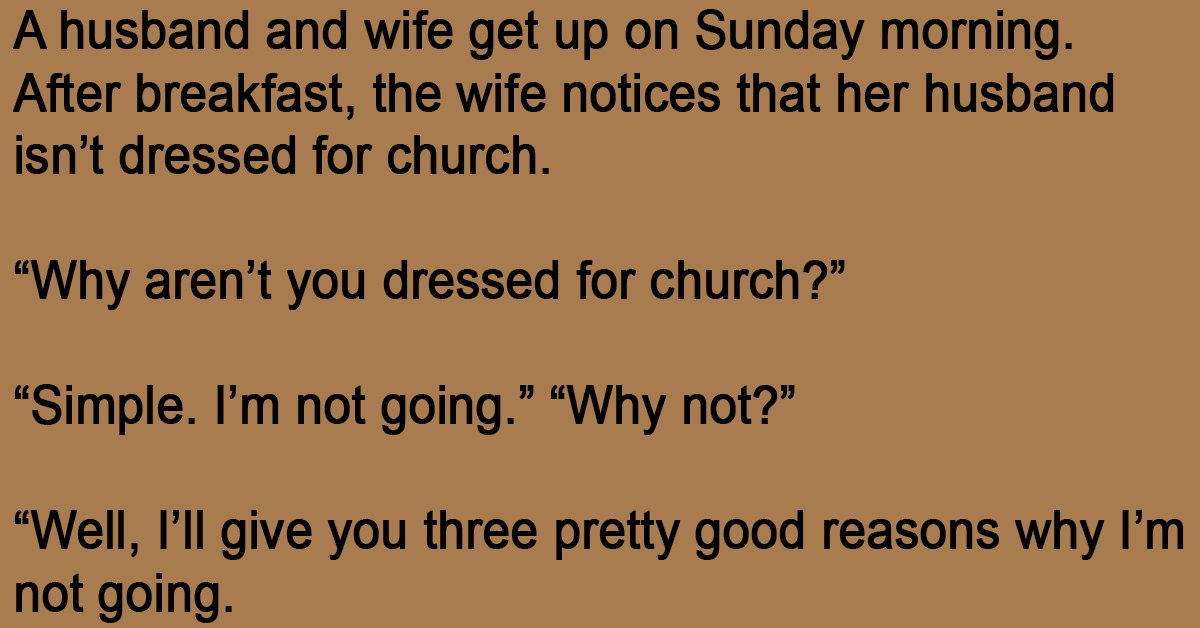 After breakfast, the wife notices that her husband isn’t dressed for church.