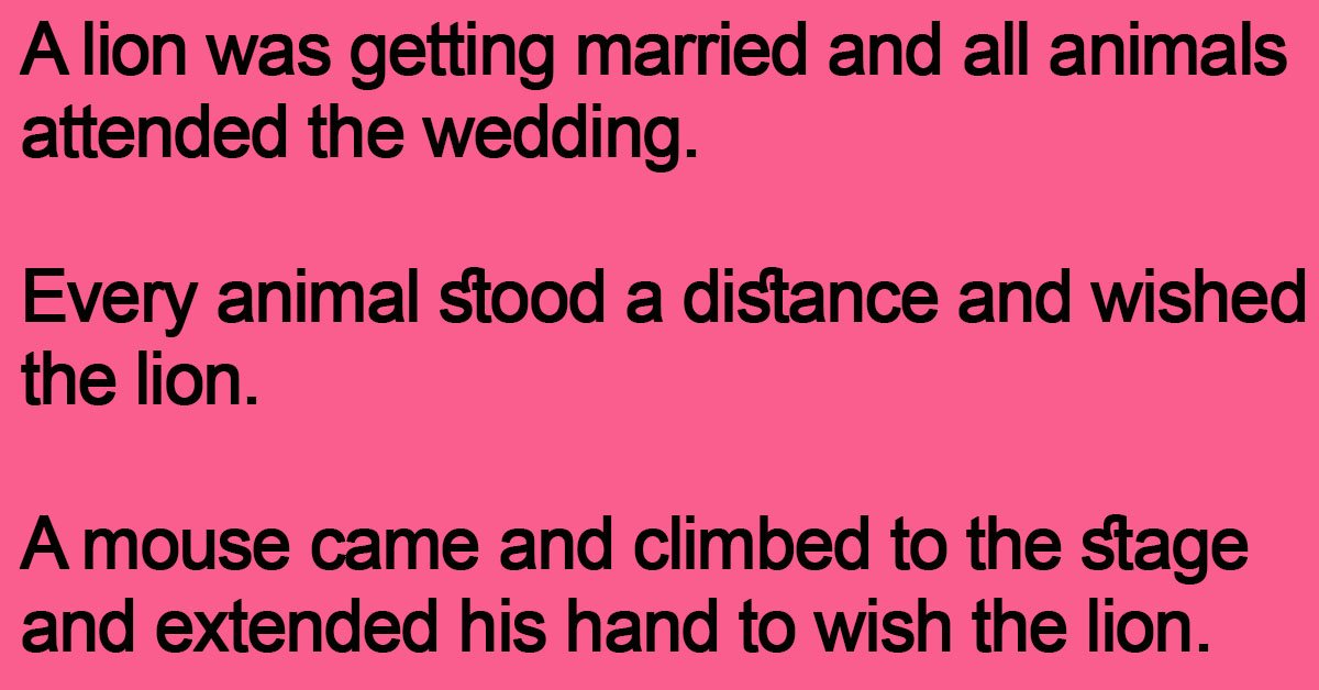 A mouse came and climbed to the stage and extended his hand to wish the lion.