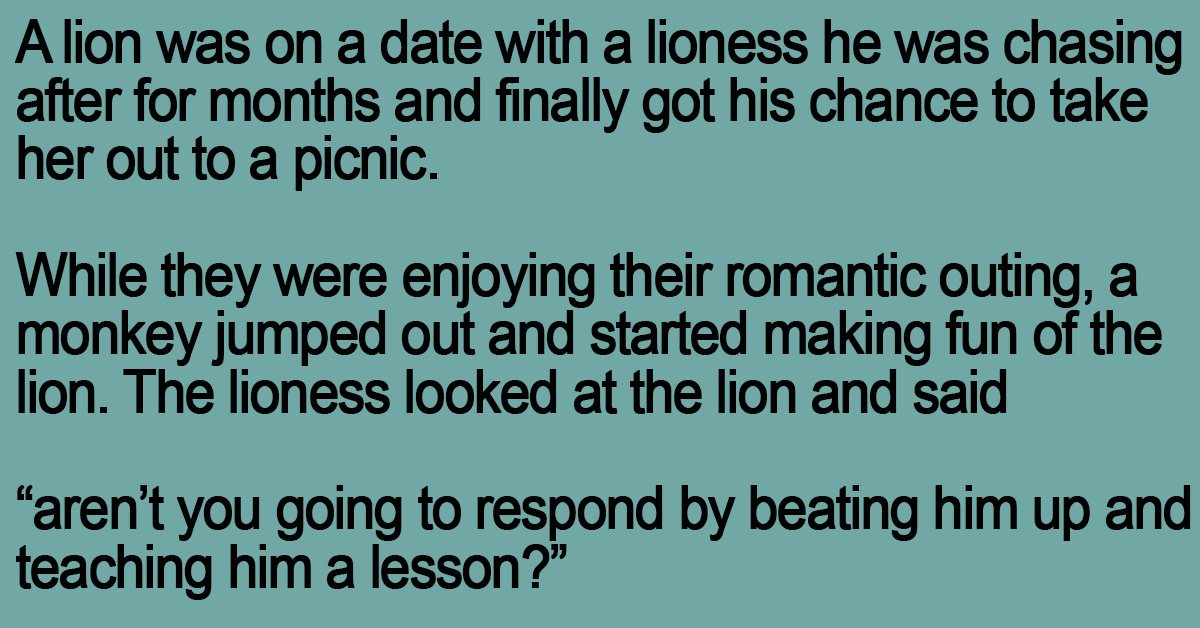 The lioness looked at the lion and said “aren’t you going to respond by beating him up and teaching him a lesson?”