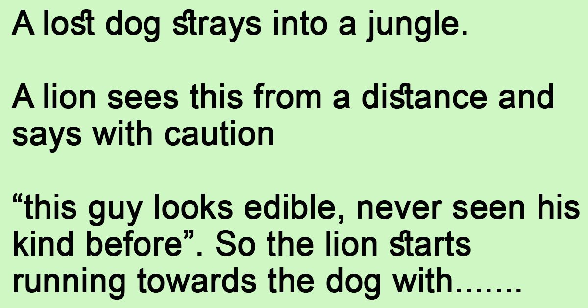 The dog notices and starts to panic but as he’s about to run he sees some bones next to him and gets an idea and says loudly
