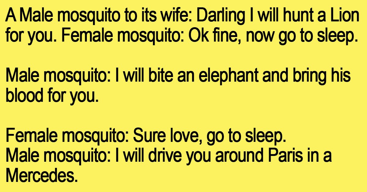 A Male mosquito to its wife: Darling I will hunt a Lion for you.