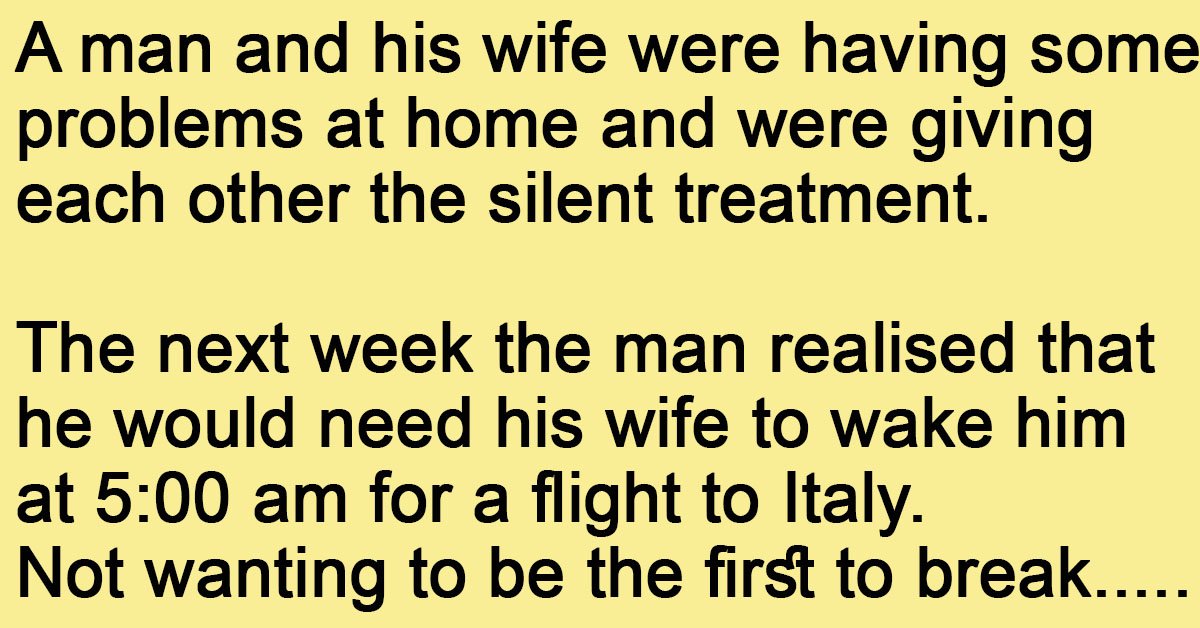 The next week the man realised that he would need his wife to wake him at 5:00 am for a flight to Italy.