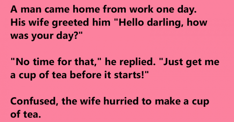Confused, the wife hurried to make a cup of tea.