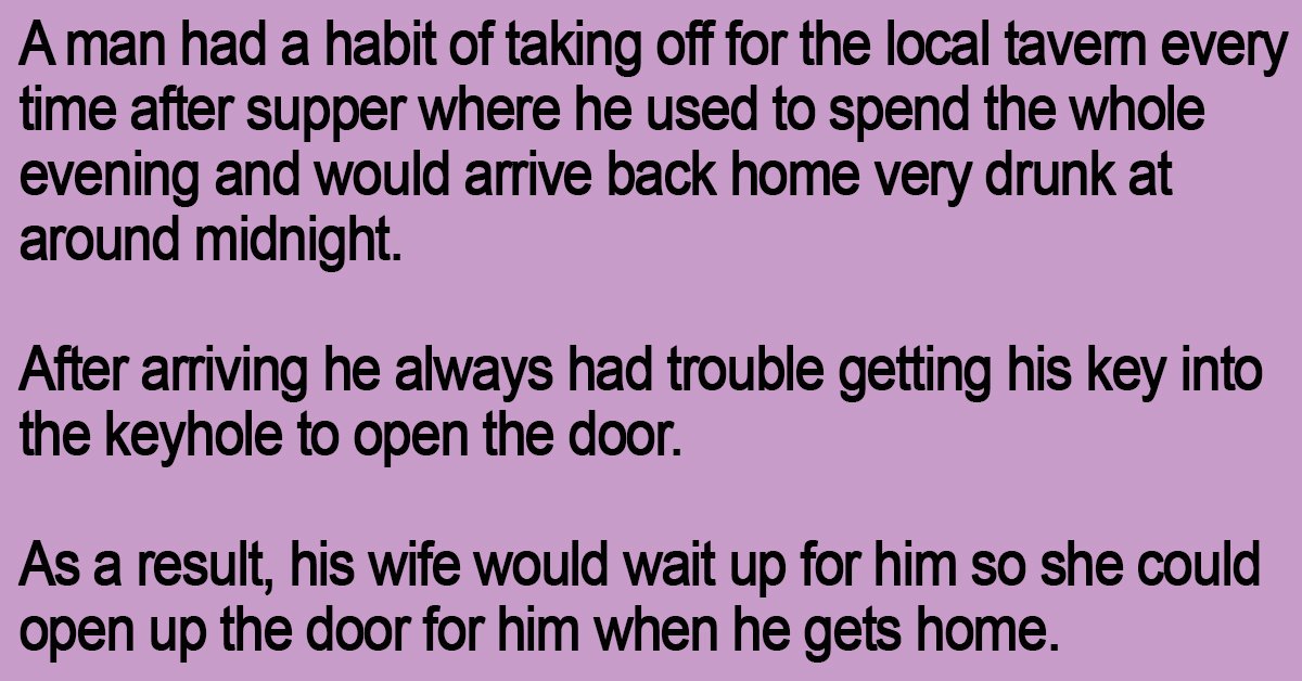 A man had a habit of taking off for the local tavern every time after supper where he used to spend the whole evening and would arrive back home very drunk at around midnight.