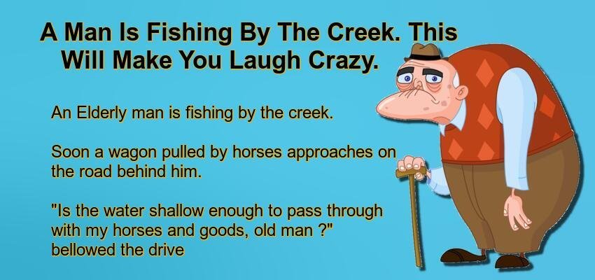 A Man Is Fishing By The Creek. – May 25, 2022 by Kevin Adams Facebook Twitter Pinterest LinkedIn An Elderly man is fishing by the creek. Soon a wagon pulled by horses approaches on the road behind him. “Is the water shallow enough to pass through with my horses and goods, old man ?” bellowed the driver. “Sure mere few feet to the right, a small family made their way across not an hour ago” meekly said the old-timer. Happy to shorten his journey the driver reins his horses across the stream. Not a few steps in when the horses succumbed to the water depth. Barely holding on to the bank the driver escaped the waters with his life intact while the horses drowned. “Oy, you old fart, you said I could make my way across here. Didn’t you tell me that a small family made it across?” The old man was puzzled, ” I don’t get it. The family of ducks passed, and their legs were much shorter than the ones in your horses.” Facebook Twitter Pinterest LinkedIn