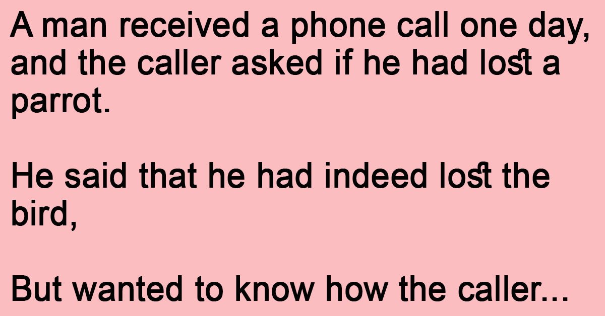 A man received a phone call one day, and the caller asked if he had lost a parrot.