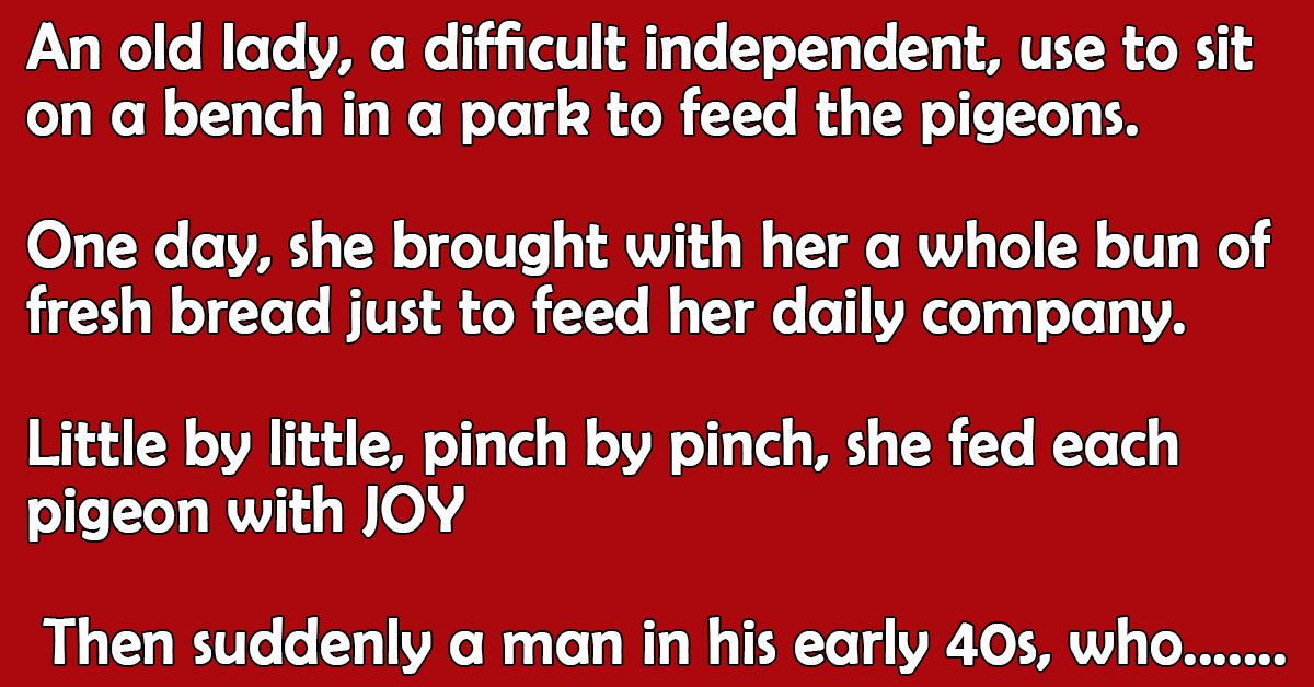 An old lady, a difficult independent, use to sit on a bench in a park to feed the pigeons.