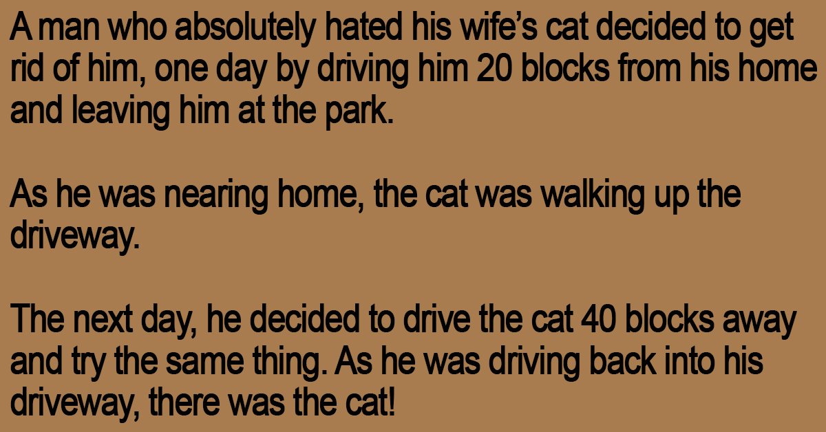 A man who absolutely hated his wife’s cat decided to get rid of him, one day by driving him 20 blocks from his home and leaving him at the park.