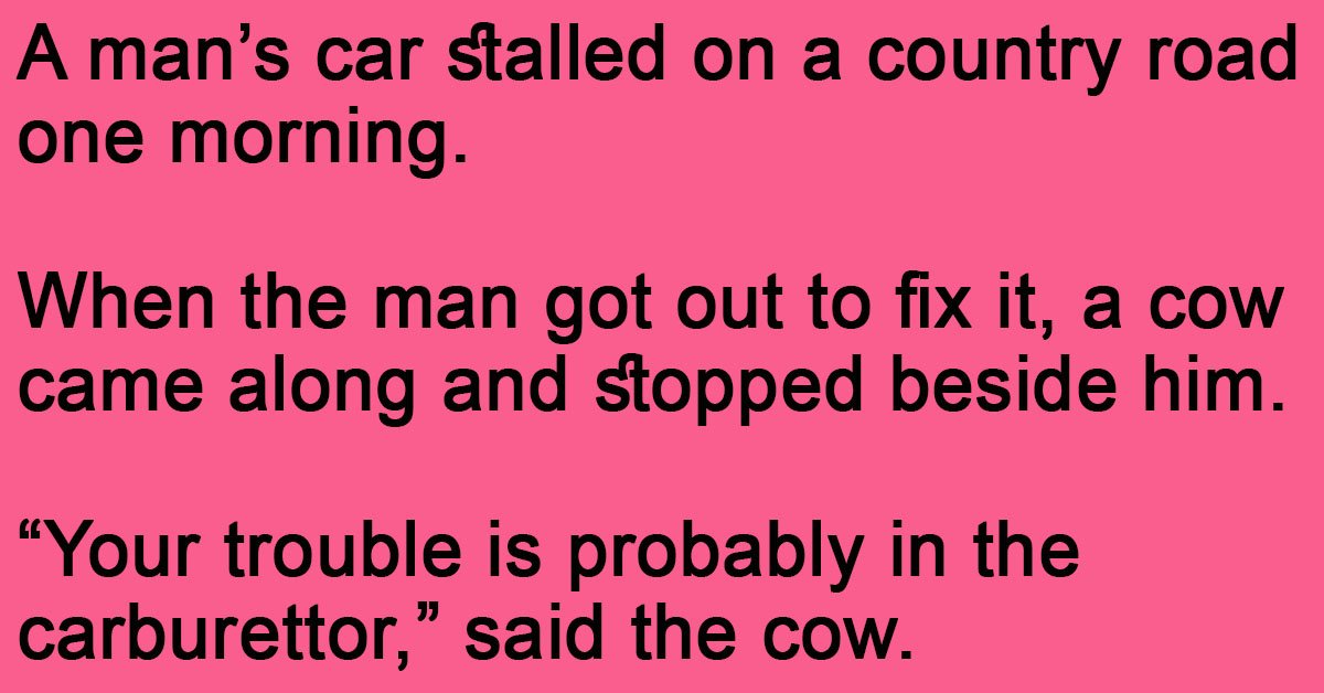 “Your trouble is probably in the carburettor,” said the cow.