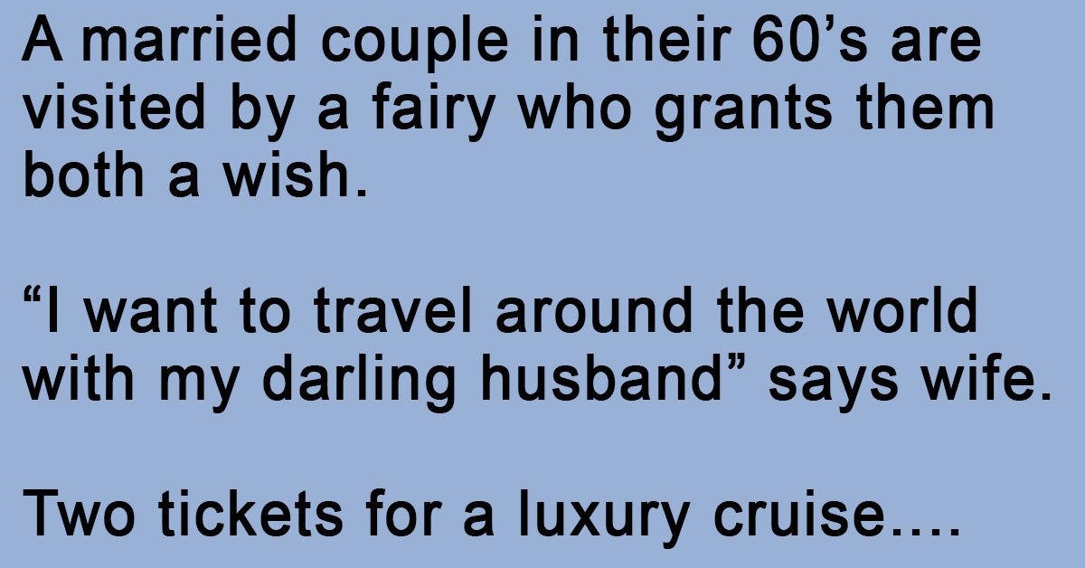 A married couple in their 60’s are visited by a fairy who grants them both a wish.