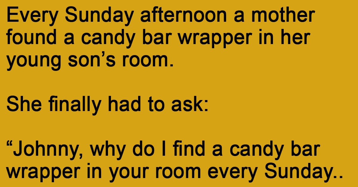 Every Sunday afternoon a mother found a candy bar wrapper in her young son’s room.
