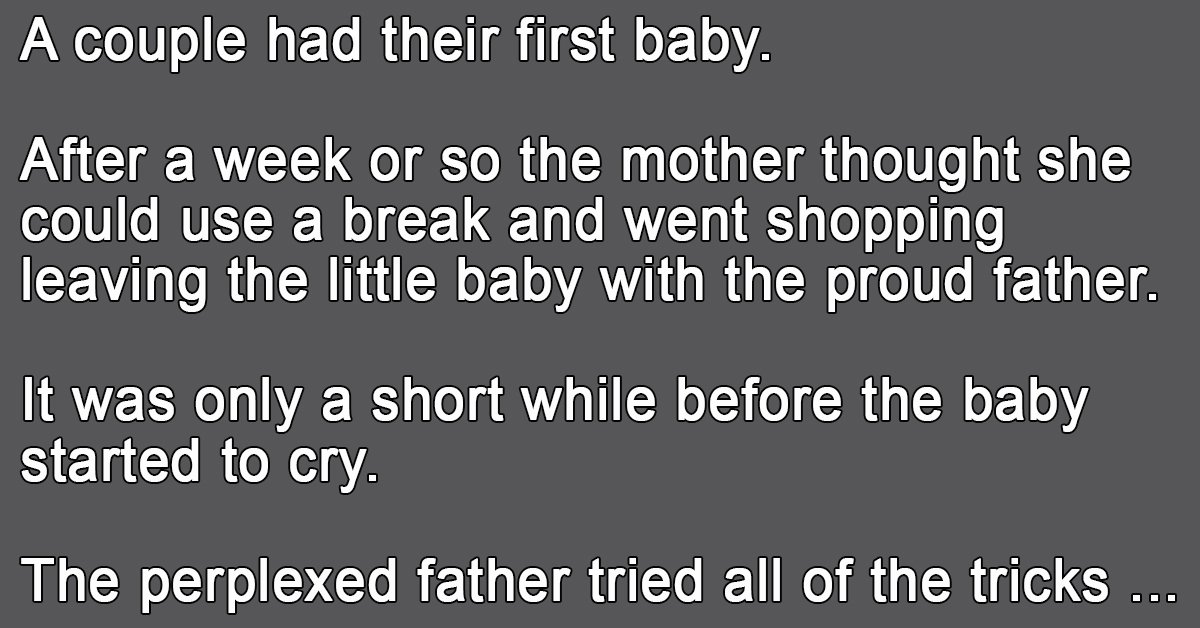 After a week or so the mother thought she could use a break and went shopping leaving the little baby with the proud father.