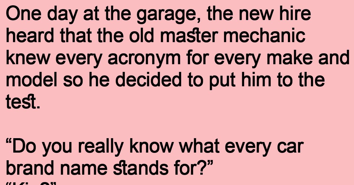 One day at the garage, the new hire heard that the old master mechanic knew every acronym for every make and model so he decided to put him to the test.