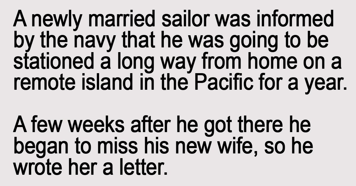 A newly married sailor was informed by the navy that he was going to be stationed a long way from home on a remote island in the Pacific for a year.