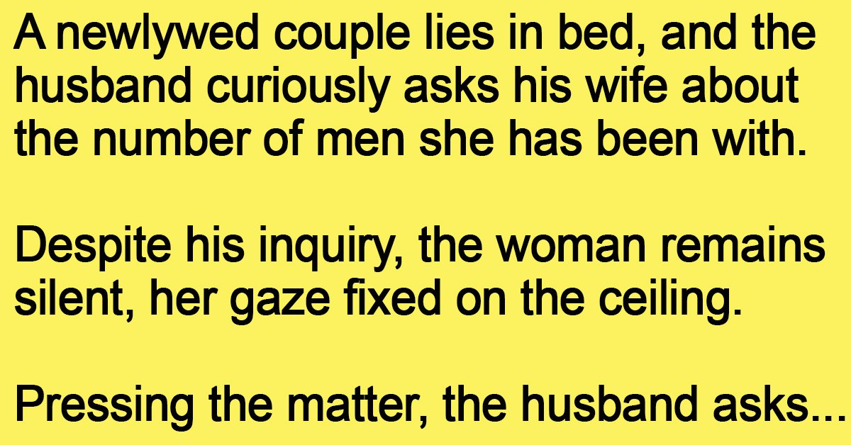 A newlywed couple lies in bed, and the husband curiously asks his wife about the number of men she has been with.