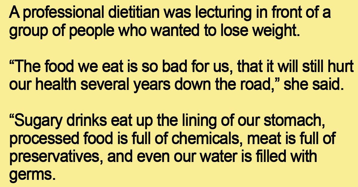 A professional dietitian was lecturing in front of a group of people who wanted to lose weight.