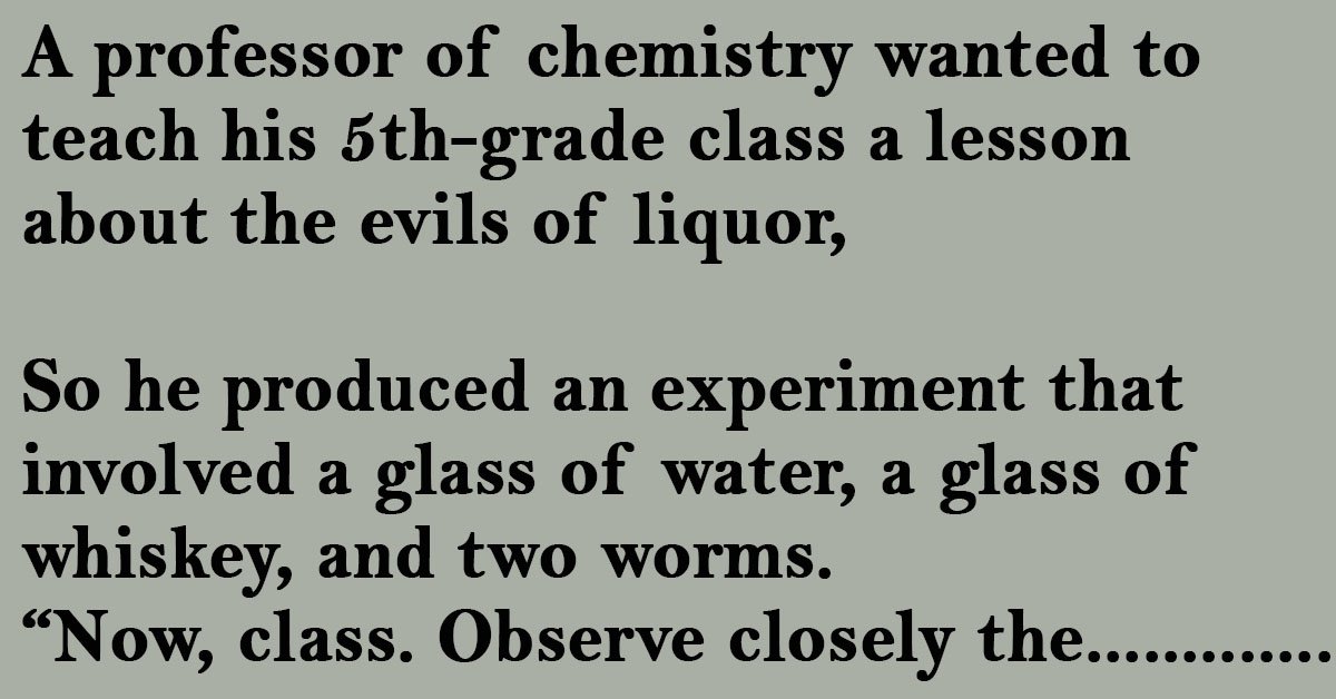 A professor of chemistry wanted to teach his 5th-grade class a lesson about the evils of liquor,