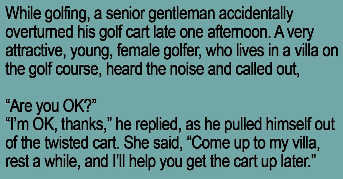 While golfing, a senior gentleman accidentally overturned his golf cart late one afternoon.