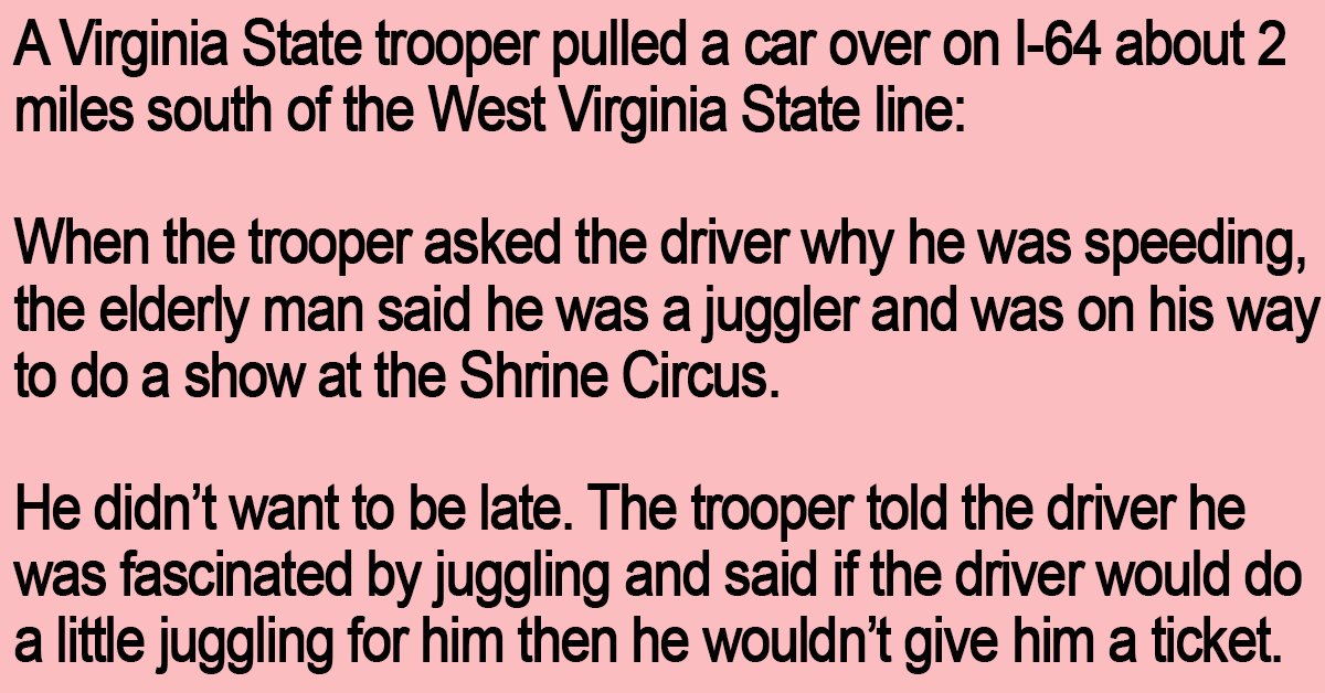 The trooper told the driver he was fascinated by juggling and said if the driver would do a little juggling for him then he wouldn’t give him a ticket.