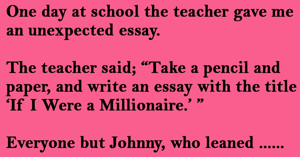 The teacher said; “Take a pencil and paper, and write an essay with the title ‘If I Were a Millionaire.’ ”