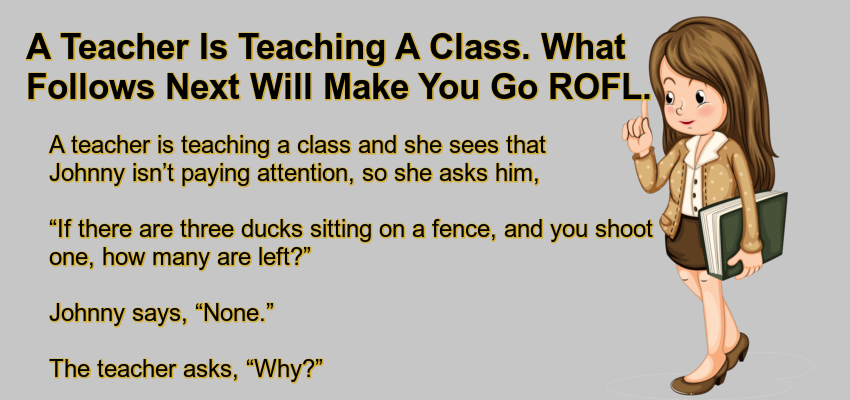 A teacher is teaching a class and she sees that Johnny isn’t paying attention, so she asks him,