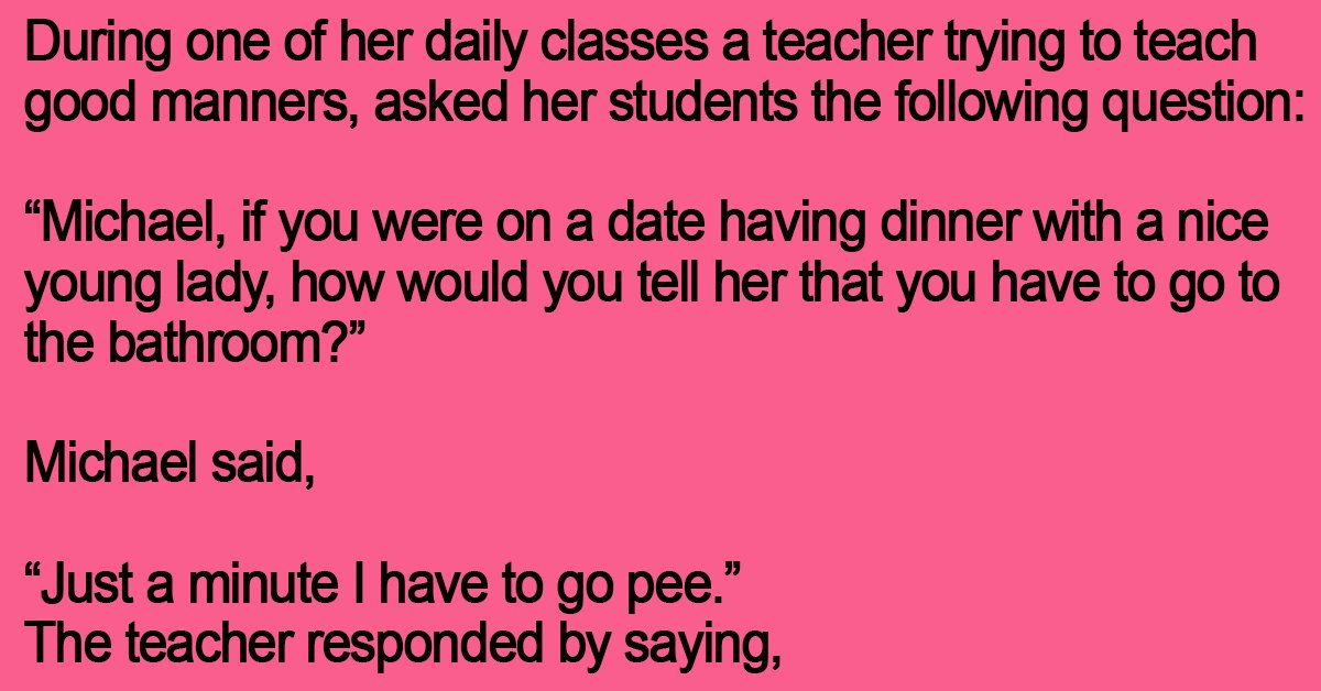 “Michael, if you were on a date having dinner with a nice young lady, how would you tell her that you have to go to the bathroom?”